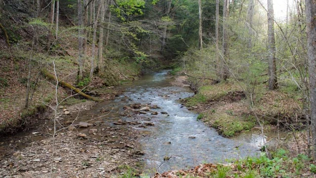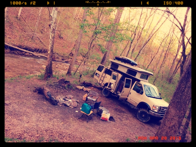 The road rises about 10 feet above one of the best camping spots I've ever seen down by the creek. It's by the water, isolated, with cover. The sound of the creek was amazing.